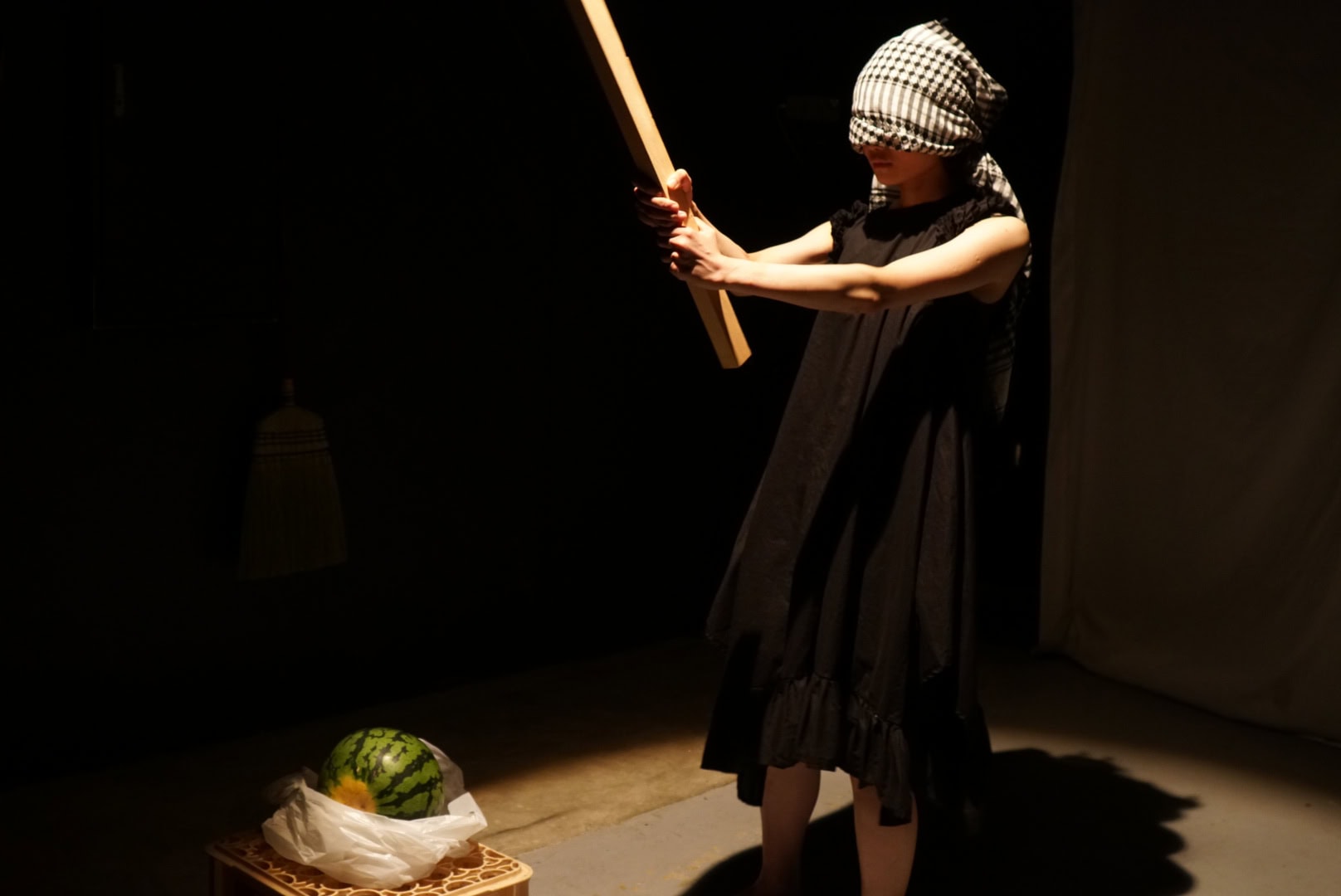 パレスチナから来た言葉を、2025年の尼崎で新たに生みなおし、アクティビズムのための道具づくりとしてアートに移植する試み。具体的には、紙芝居、ノイズ音楽、西瓜割り、日記、朗読、共同執筆など。